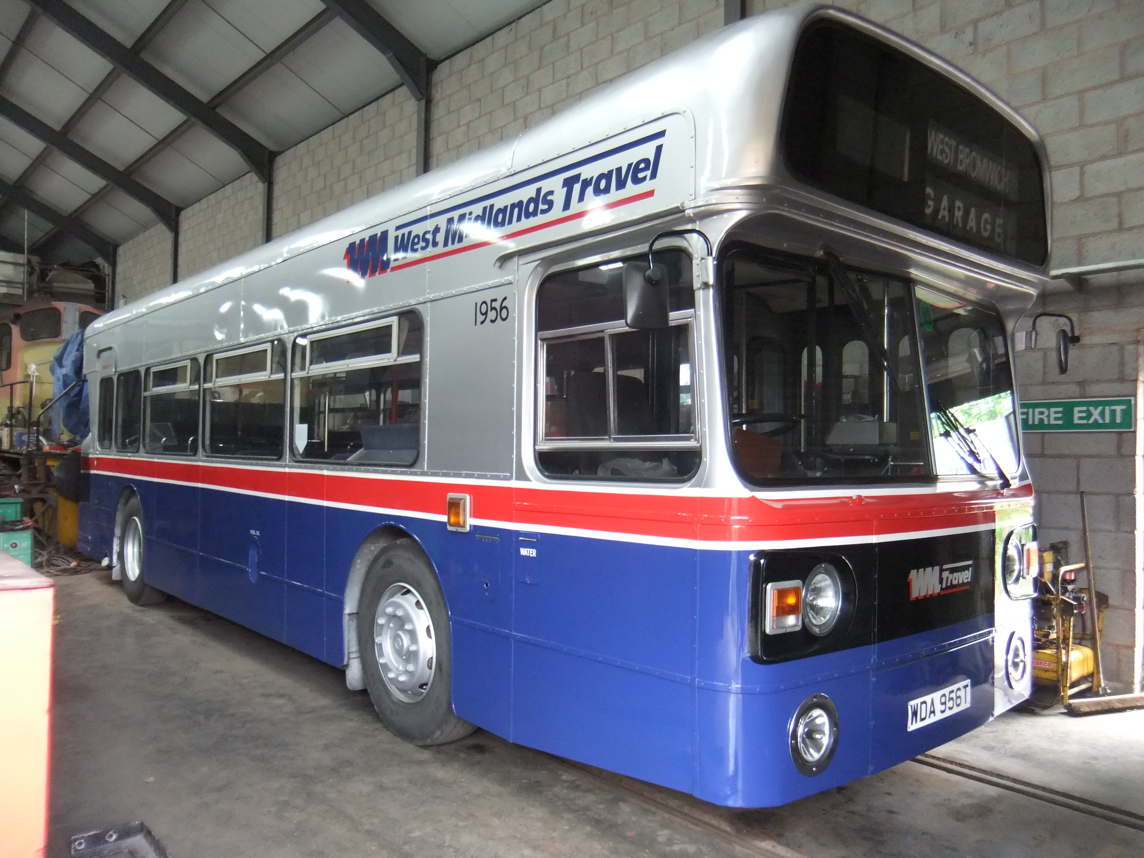 It is now a single decked bus, having been converted from double decker by West Midlands Travel at the Green Lane Depot, Walsall in 1994, and is in WMT livery. This was a project for training mini-bus drivers to learn single deck operation, and there was a surplus of double deckers at the time.
