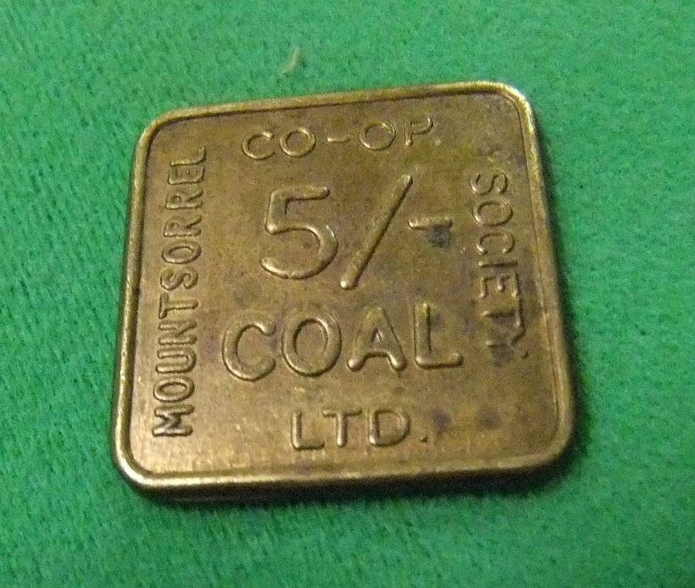 Mount Sorrel Co-op coal token – 5/- = 25p