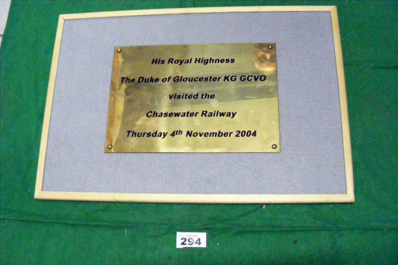 294 Commemorative plaque Plaque unveiled by Duke of Gloucester to commemorate visit Chasewater R4.S3