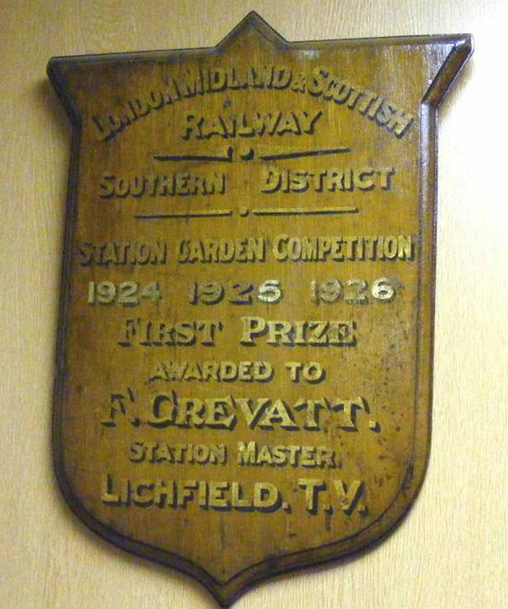 329 Shield – Winners of Station Gardens Competition LMS Southern District, 1924/26 Lichfield TV Station LMS W4