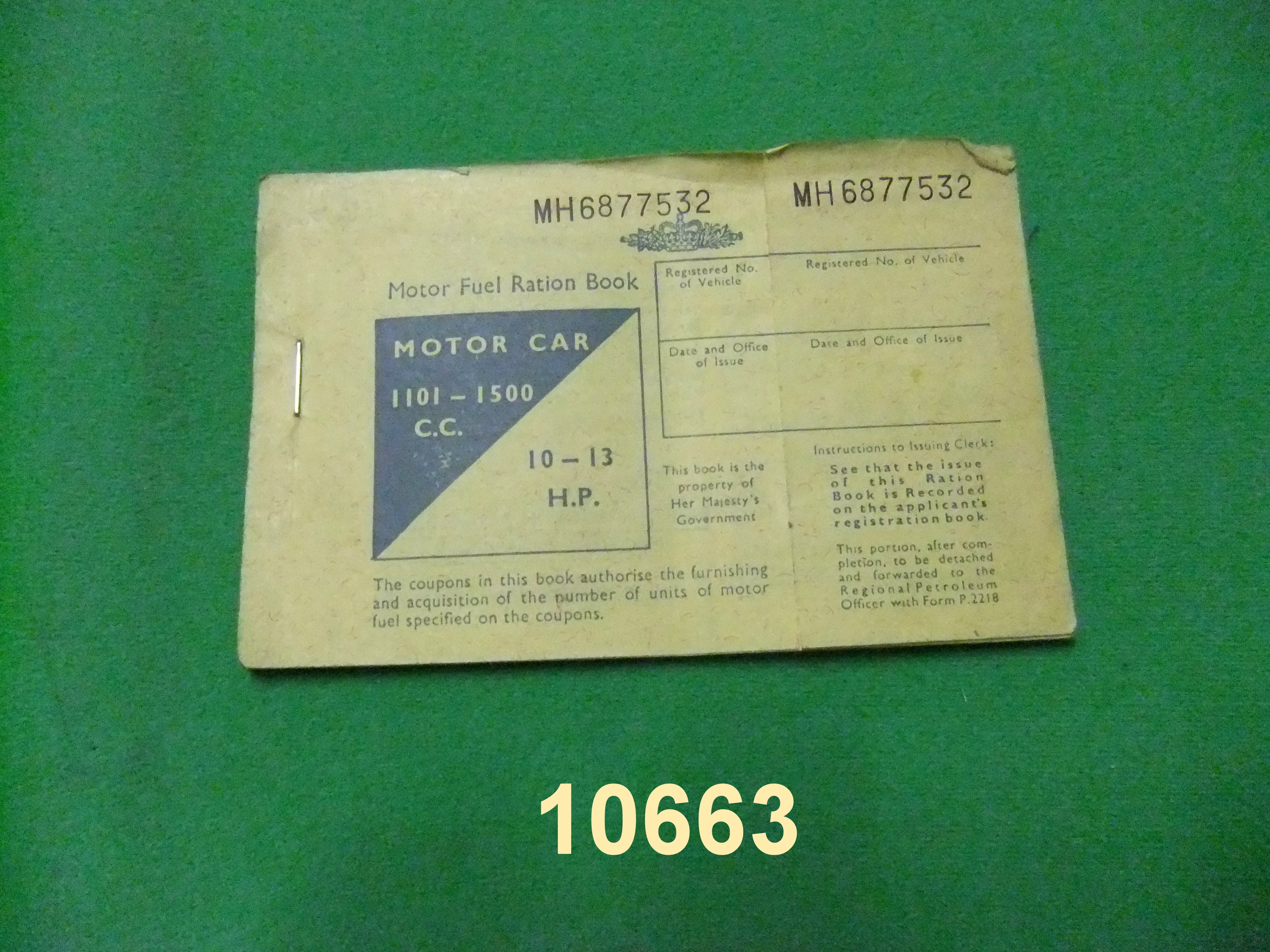10663 Petrol Coupons 1950s Petrol Ration 10341