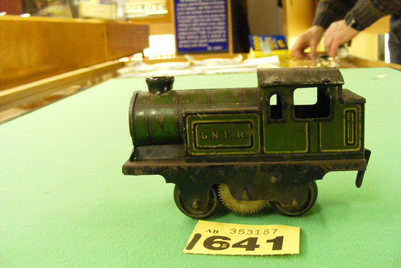 1641 Locomotive Clockwork, 4 wheel, green, tinplate, LNER C2