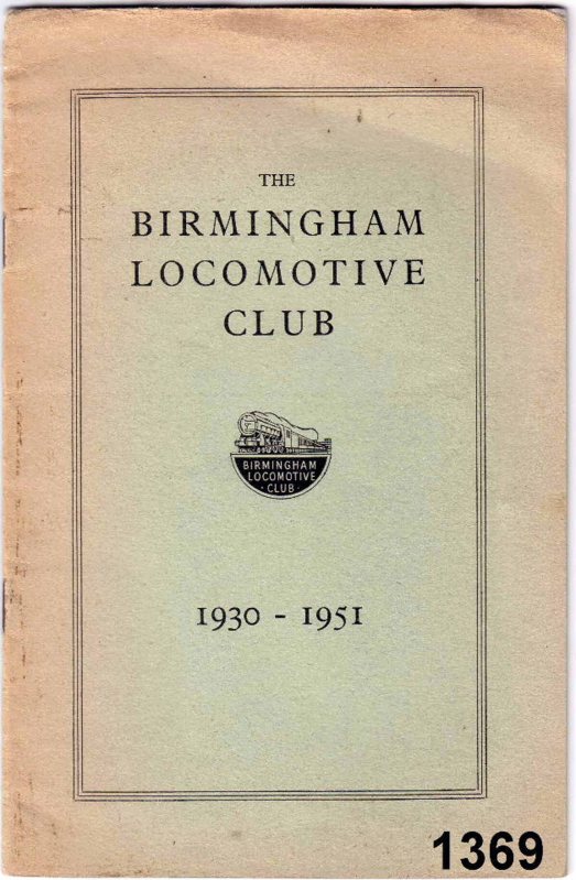 1369 Booklet The Birmingham Locomotive Club – 1930 – 1951 BS