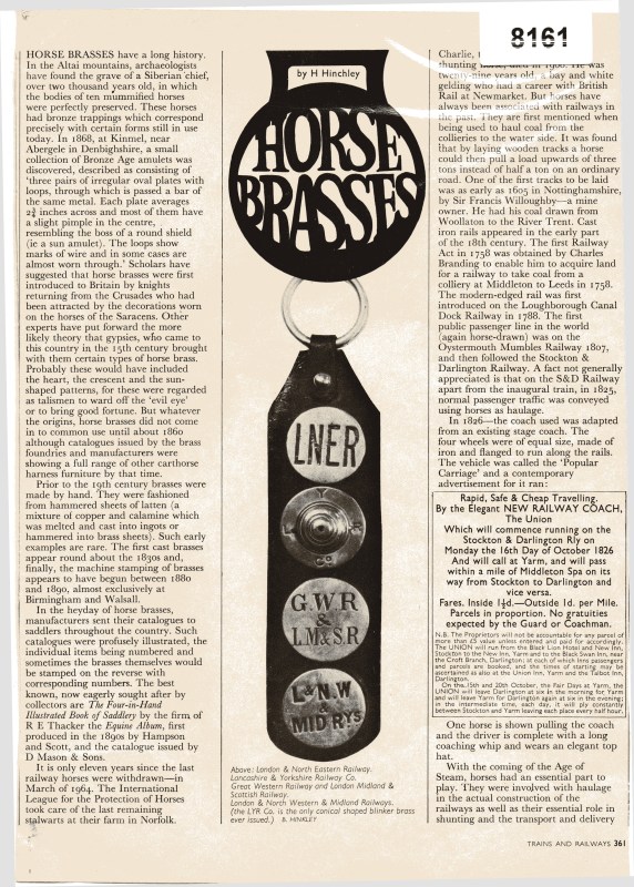 8161 Information Sheet Horse Brasses Trains & Railways Arch File 5