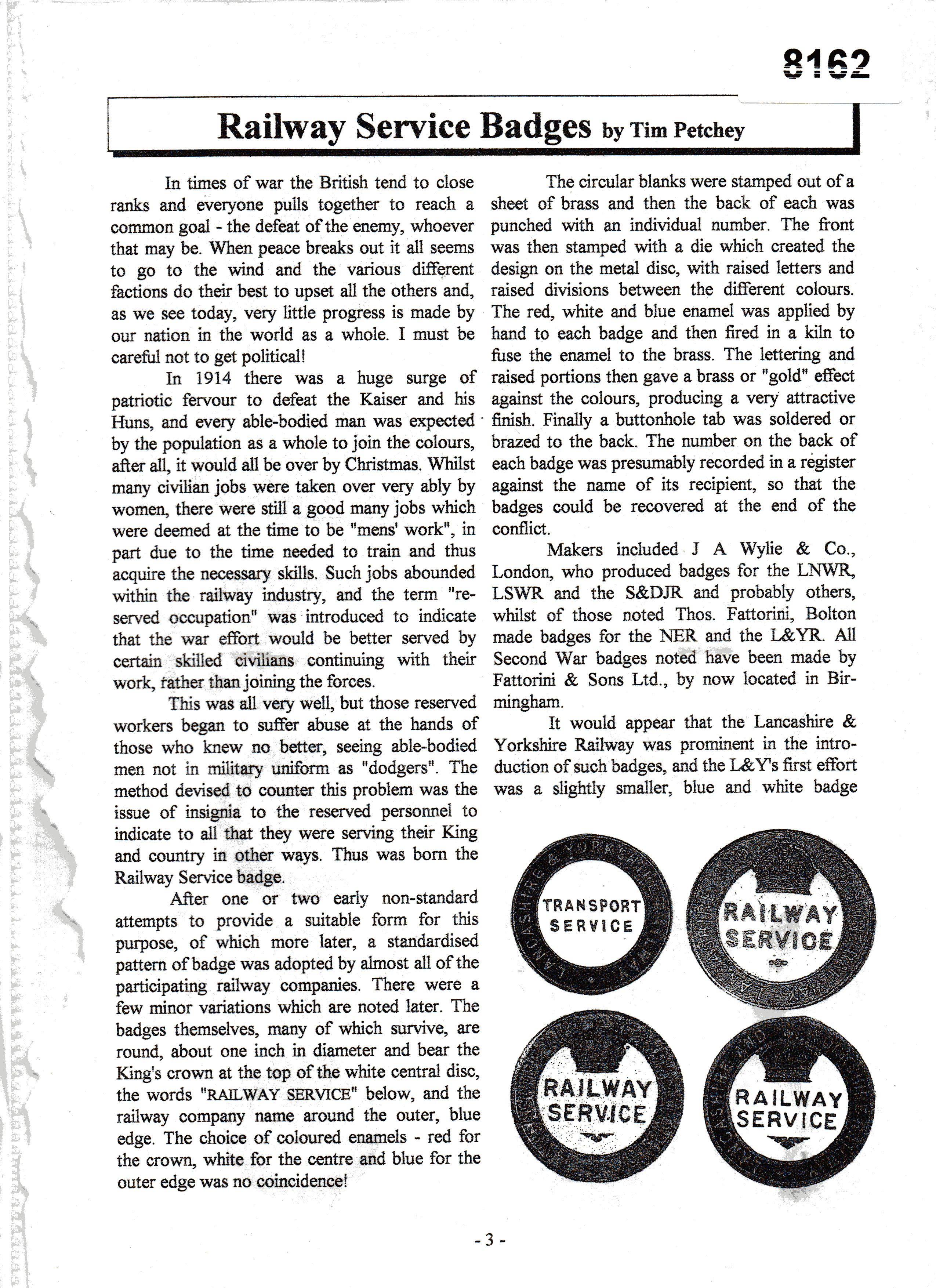 8162 Information Sheet Railway Service Badges Tim Petchey Arch File 5
