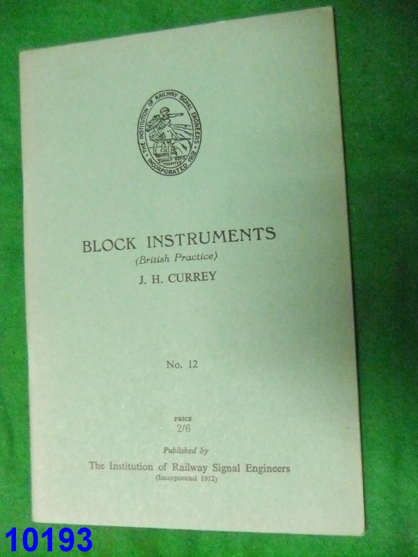 10193 Booklet 1952 – Block Instruments. J.H.Currey Published by the Institution of Railway Signal Engineers C7