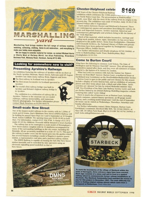 8169 Information Sheet Sept 1998 Marshalling Yard Railway World Arch File 5