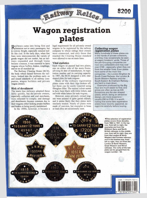 8200 Railway Relics Wagon Registration Plates Unknown Magazine Arch File 6