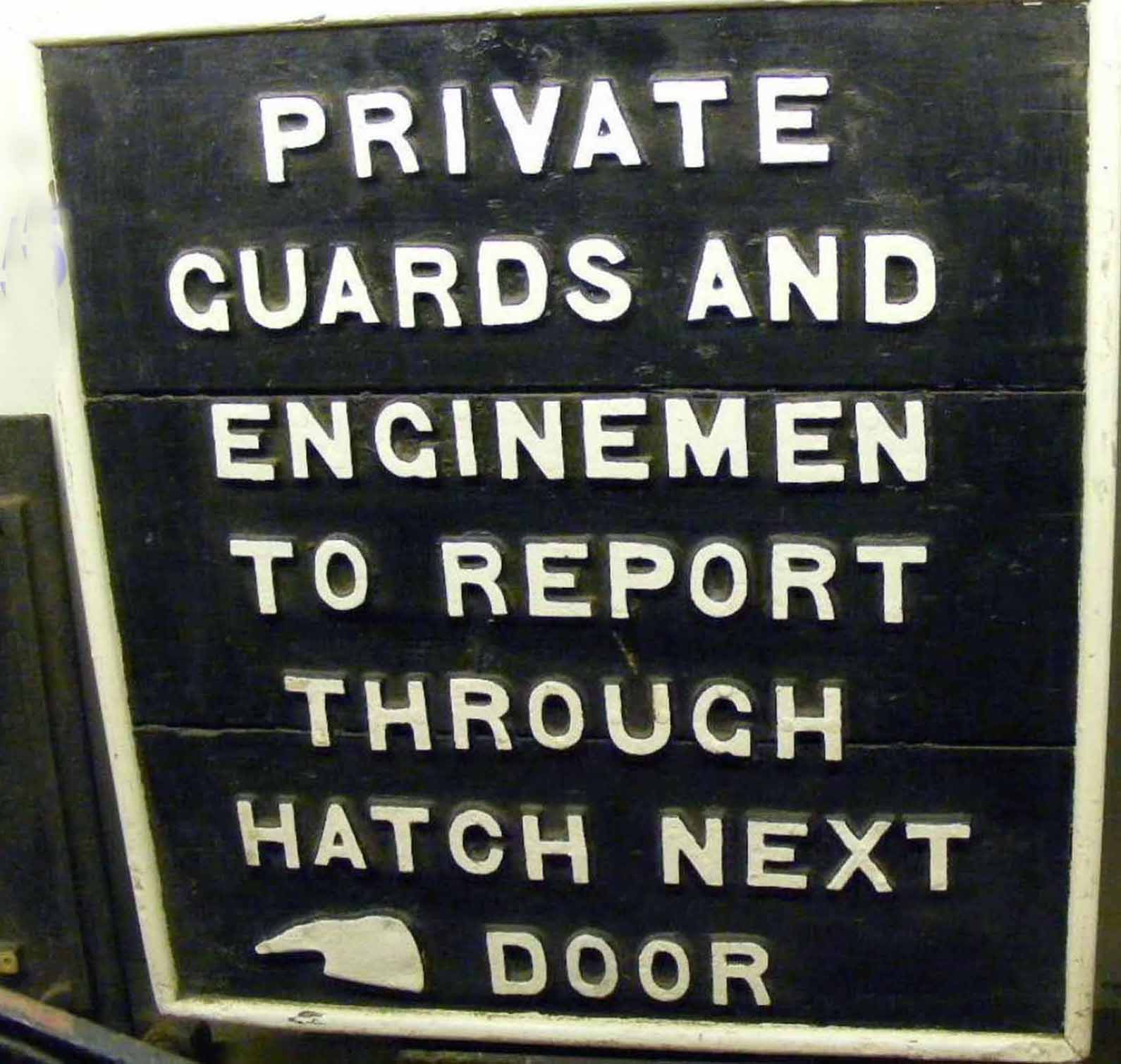 565 Signage ‘Private. Guards & Enginemen to report through hatch next door’ GWR U2