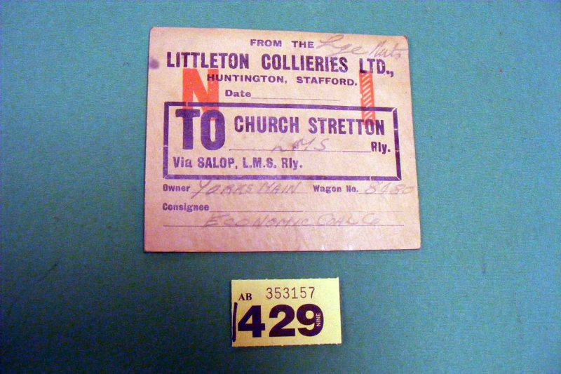 1429 Wagon Label Littleton Coll. to Church Stretton Littleton Colliery C15