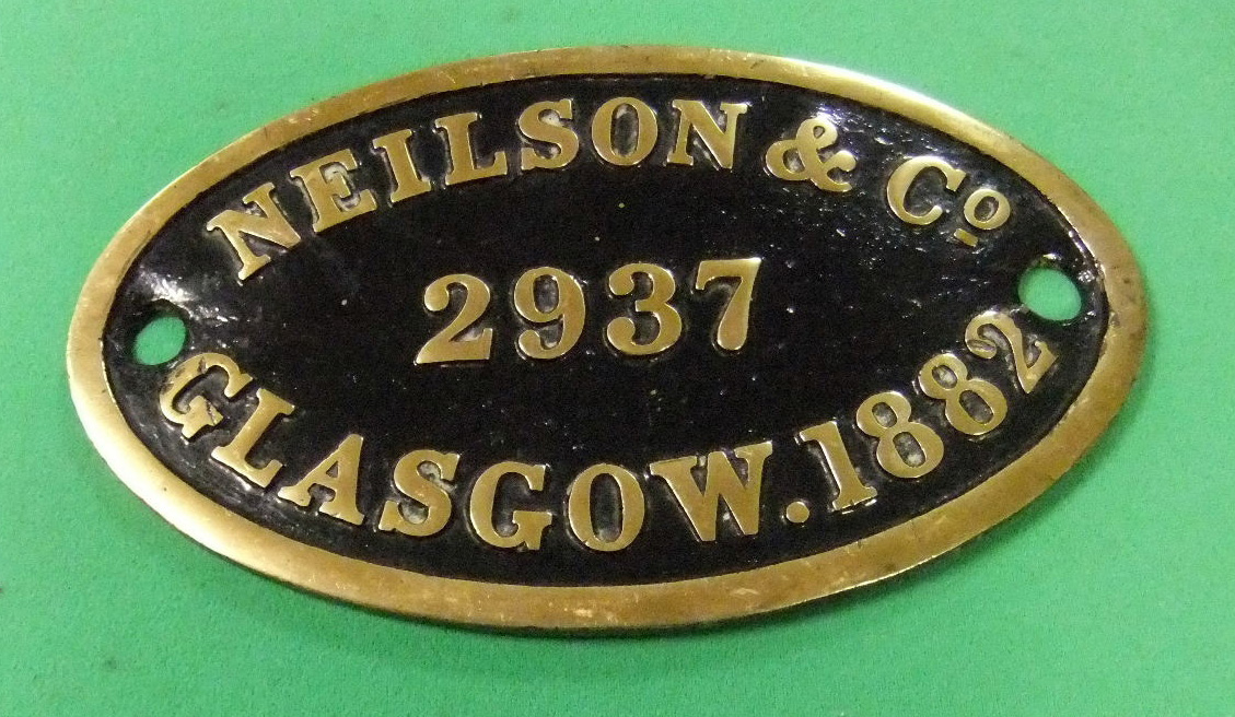 1735 Locomotive Worksplate Neilson 2937/1882 Neilson C16