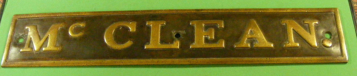 1897 Locomotive nameplate McClean – Ex Cannock Chase Colliery Co Beyer Peacock C1