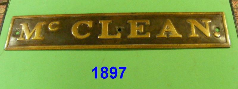 1897 Locomotive nameplate McClean – Ex Cannock Chase Colliery Co Beyer Peacock C1