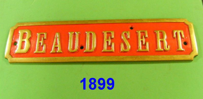 1899 Locomotive nameplate Beaudesert – Ex Cannock & Rugeley Coll Fox Walker C1