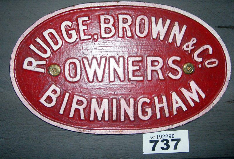 737 Wagon plate Rudge, Brown & Co., Owners, Birmingham Rudge, Brown & Co W3