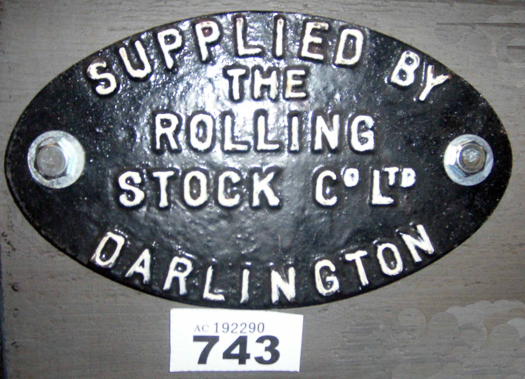743 Wagon plate Supplied by the Rolling Stock Co. Ltd., Darlington Rolling Stock Co. Ltd., Darlington W3