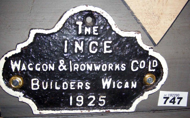 747 Wagon plate The Ince Waggon & Ironworks Co. Ltd. The Ince Waggon & Ironworks Co. Ltd., Builders, Wigan 1925 W3