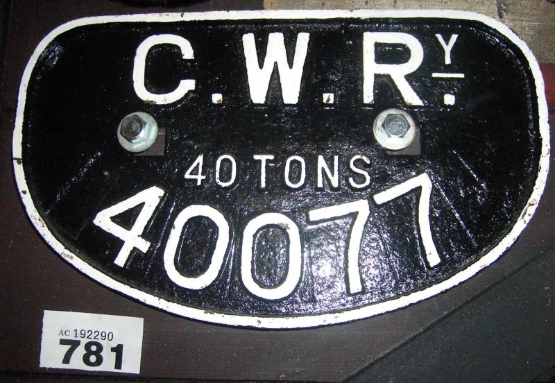 781 Wagon plate GW Ry 40 tons 40077 GWR C16