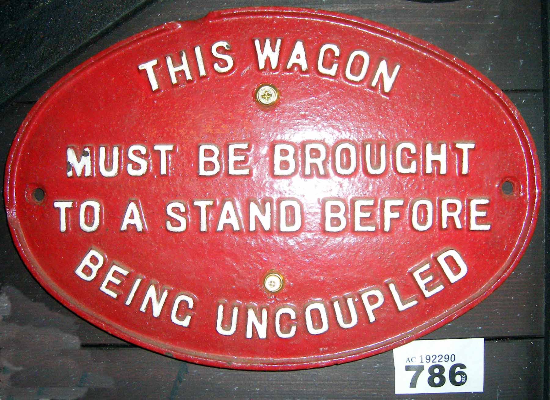 786 Wagon plate Wagon to be brought to a stand C16