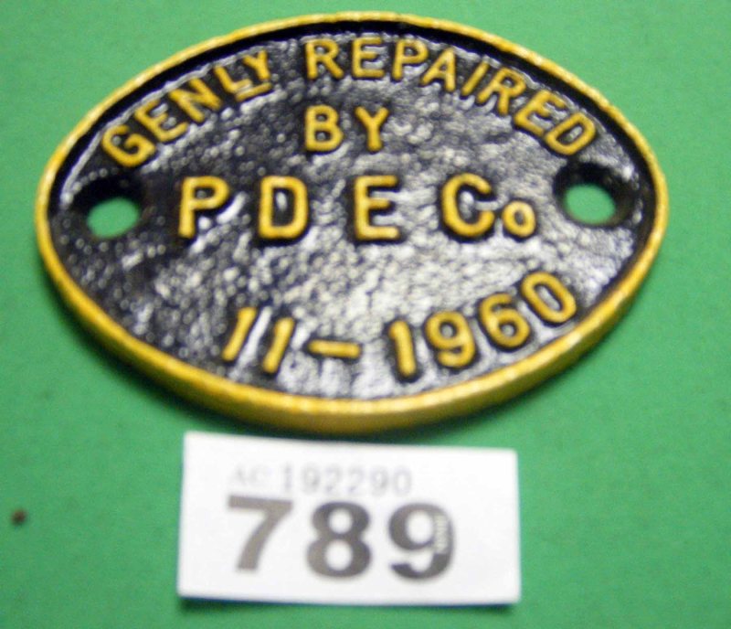 789 Wagon plate Generally repaired by P.D.E. Co. 11 – 1960 P.D.E. Co. C16