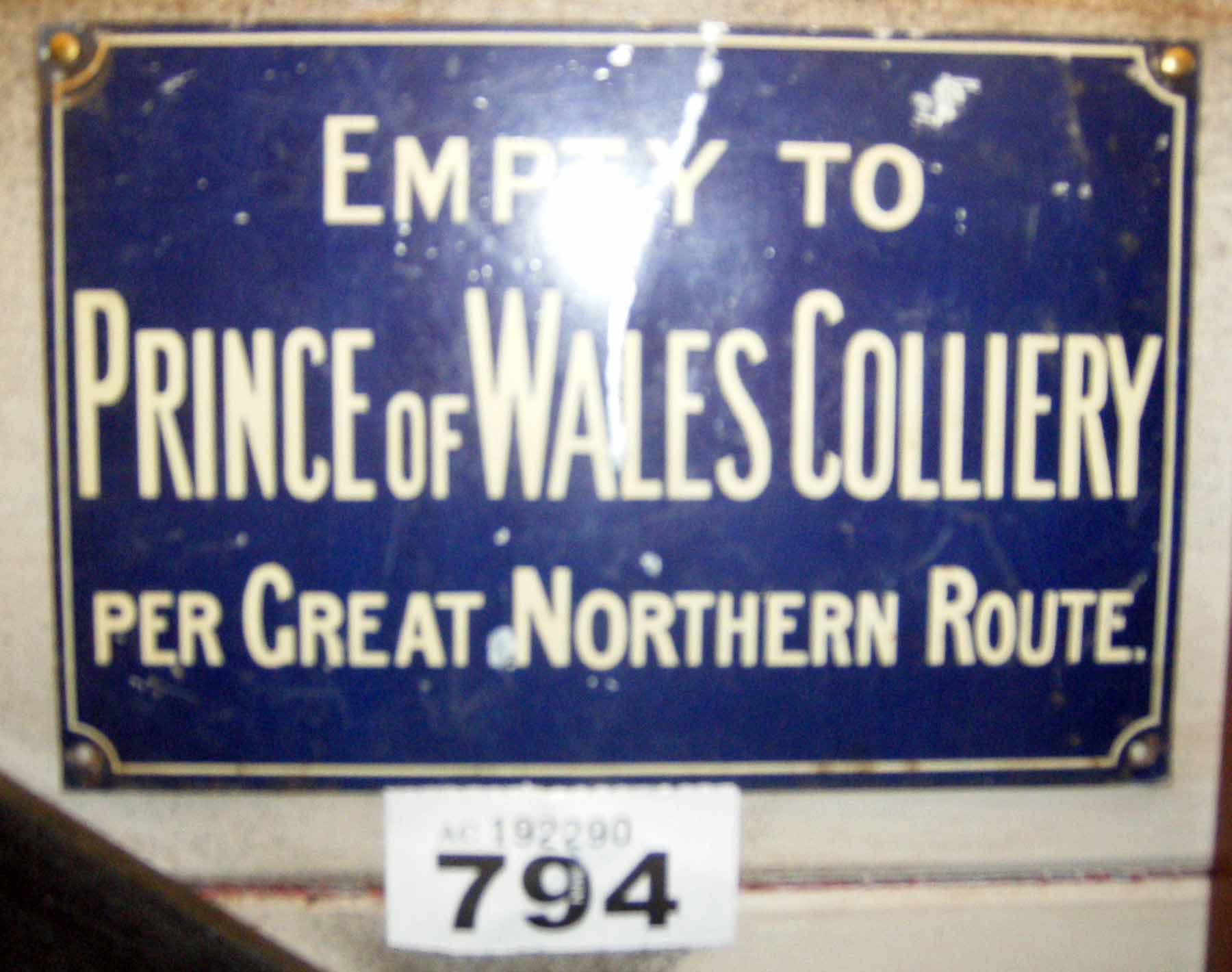 794 Wagon plate Empty to Prince of Wales Colliery per Great Northern route Prince of Wales Colliery C19