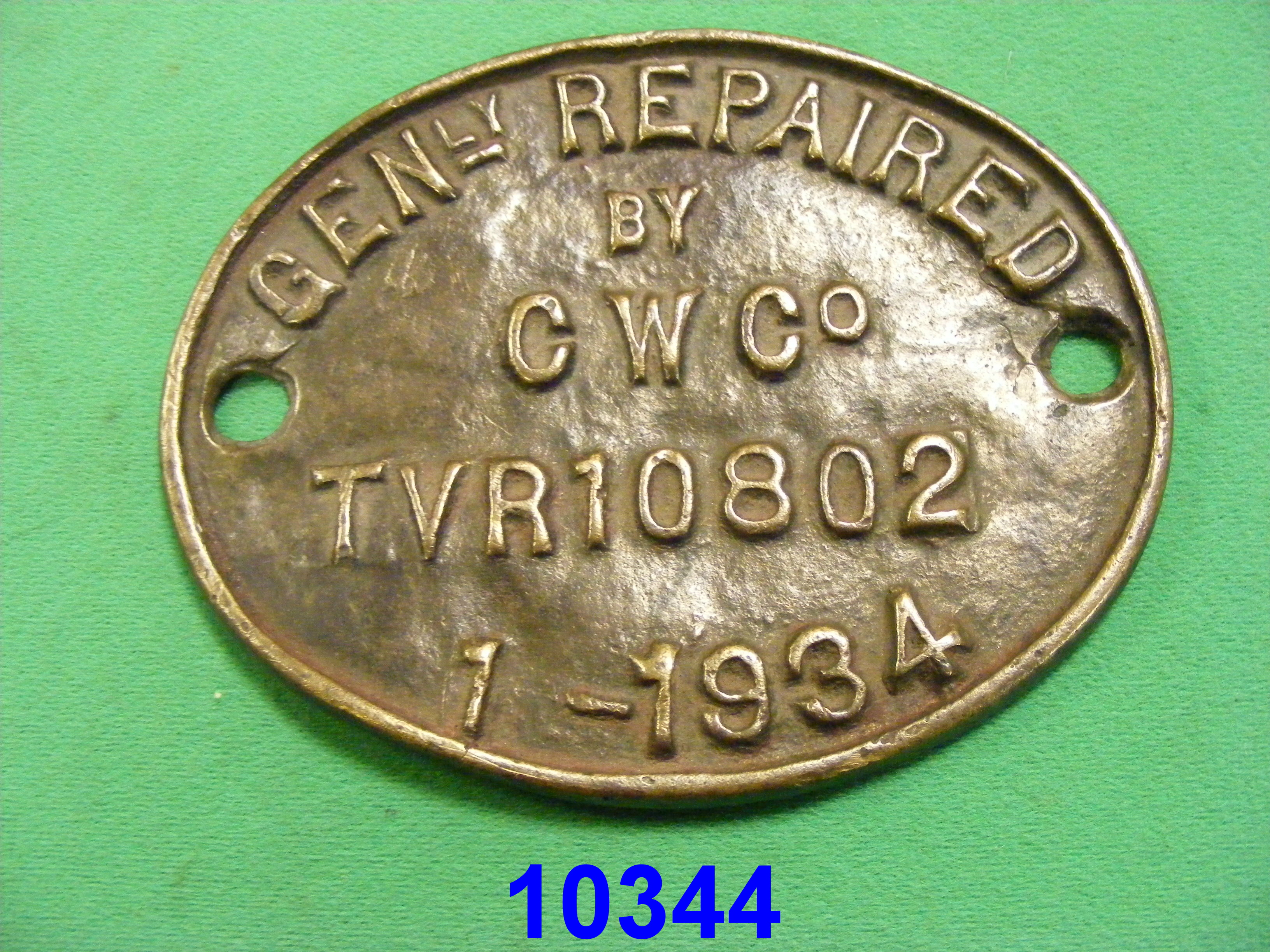 10344 Wagon plate Oval brass wagon repair plate CW Co C19