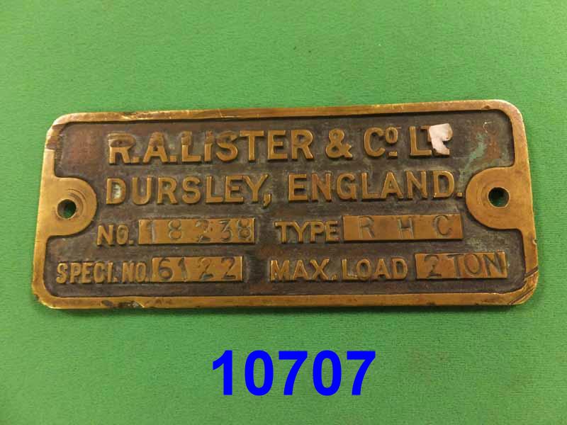 10707 Manufacturer’s plate 6.3″x 2.5″ No.18238 Type RHC R.A.Lister & Co.Ltd C16