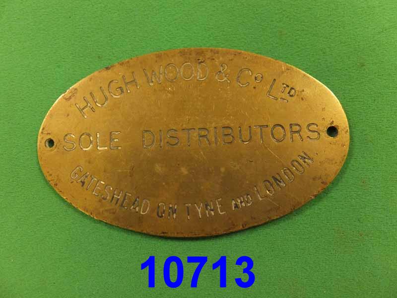 10713 Agent’s plate 5.1″x 3.1″ Sole Distributors, Gateshead & London Hugh Wood & Co.Ltd C11