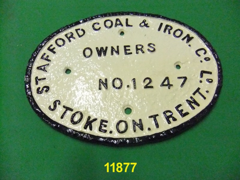 11877 Wagon owner’s plate Stafford Coal & Iron Co.11.5″x 8.75″ No 1247 Stoke-on-Trent Stafford C&I Co.Ltd. P2