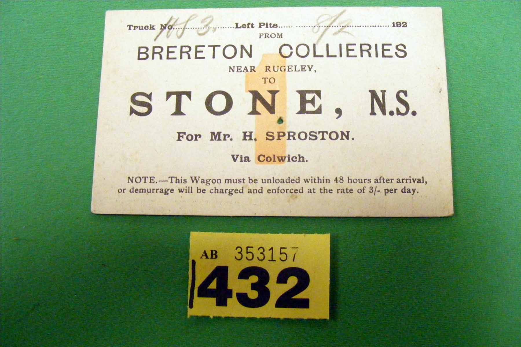 1432 Wagon Label Brereton Coll. to Stone Brereton Collieries C15