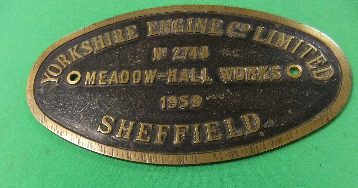 1731 Locomotive Worksplate Yorkshire Engine Co. 2748-1959 – 0-6-0DE Loco Yorkshire Engine Co.