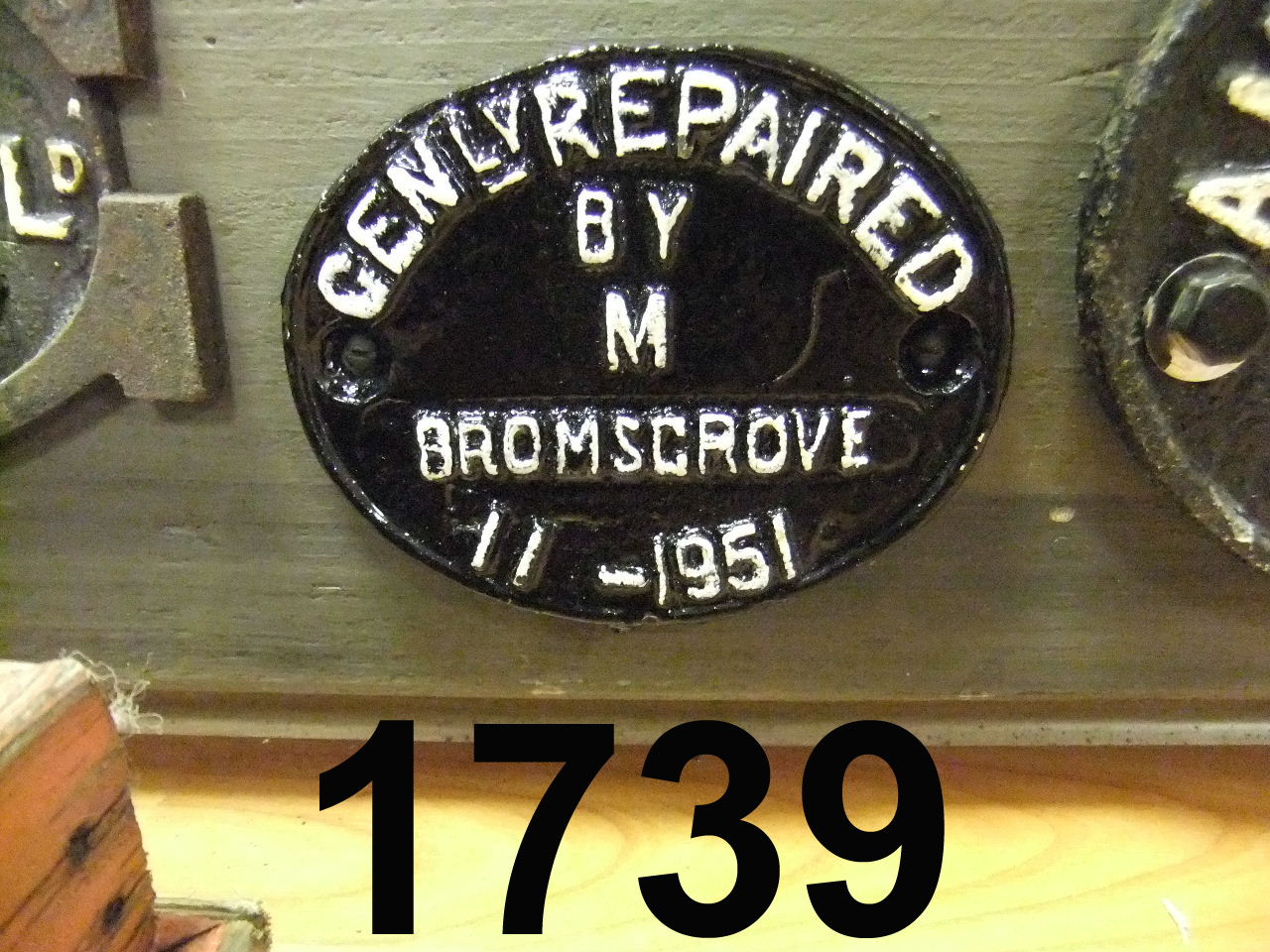 1739 Wagon plate Genl’y repaired by ‘M’ Bromsgrove 11-1951 W3