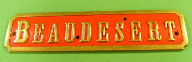 1899 Locomotive nameplate Beaudesert – Ex Cannock & Rugeley Coll Fox Walker C1
