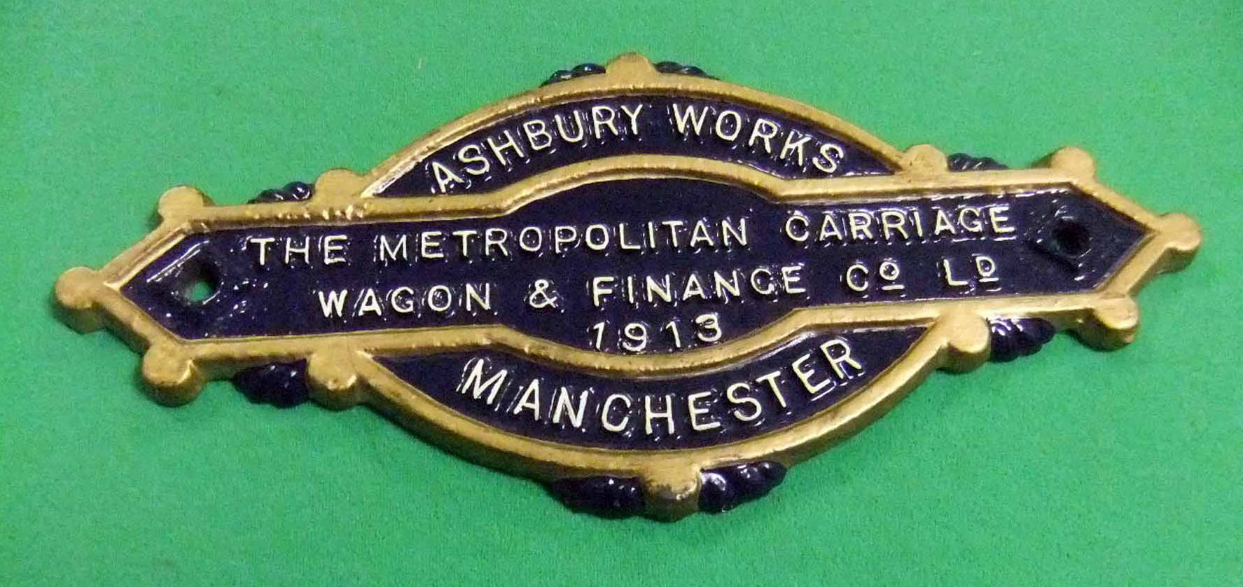 2109 Wagon plate Ashbury Works, Manchester 1913 Metro Carriage, Wagon & Finance Co. C18