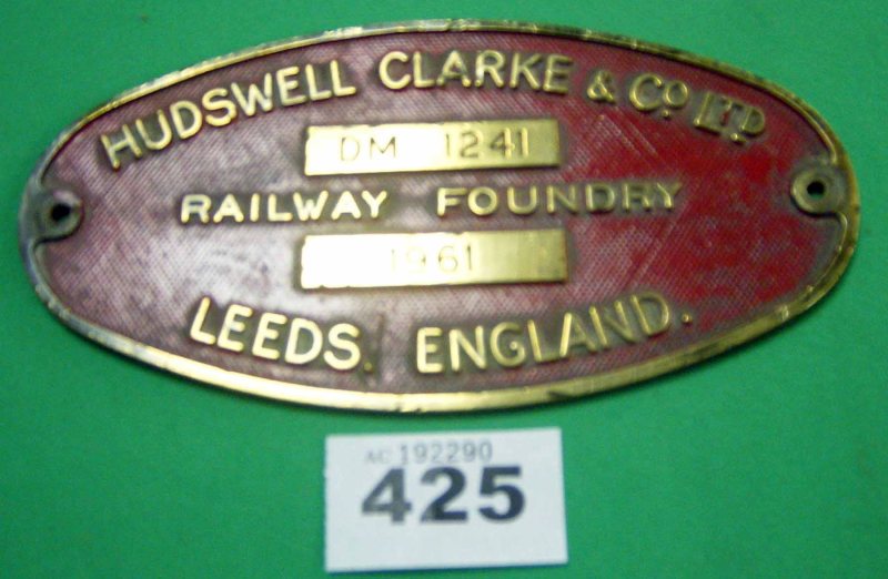 425 Works plate Hudswell Clark – Ex narrow gauge diesel loco Hudswell Clarke C11