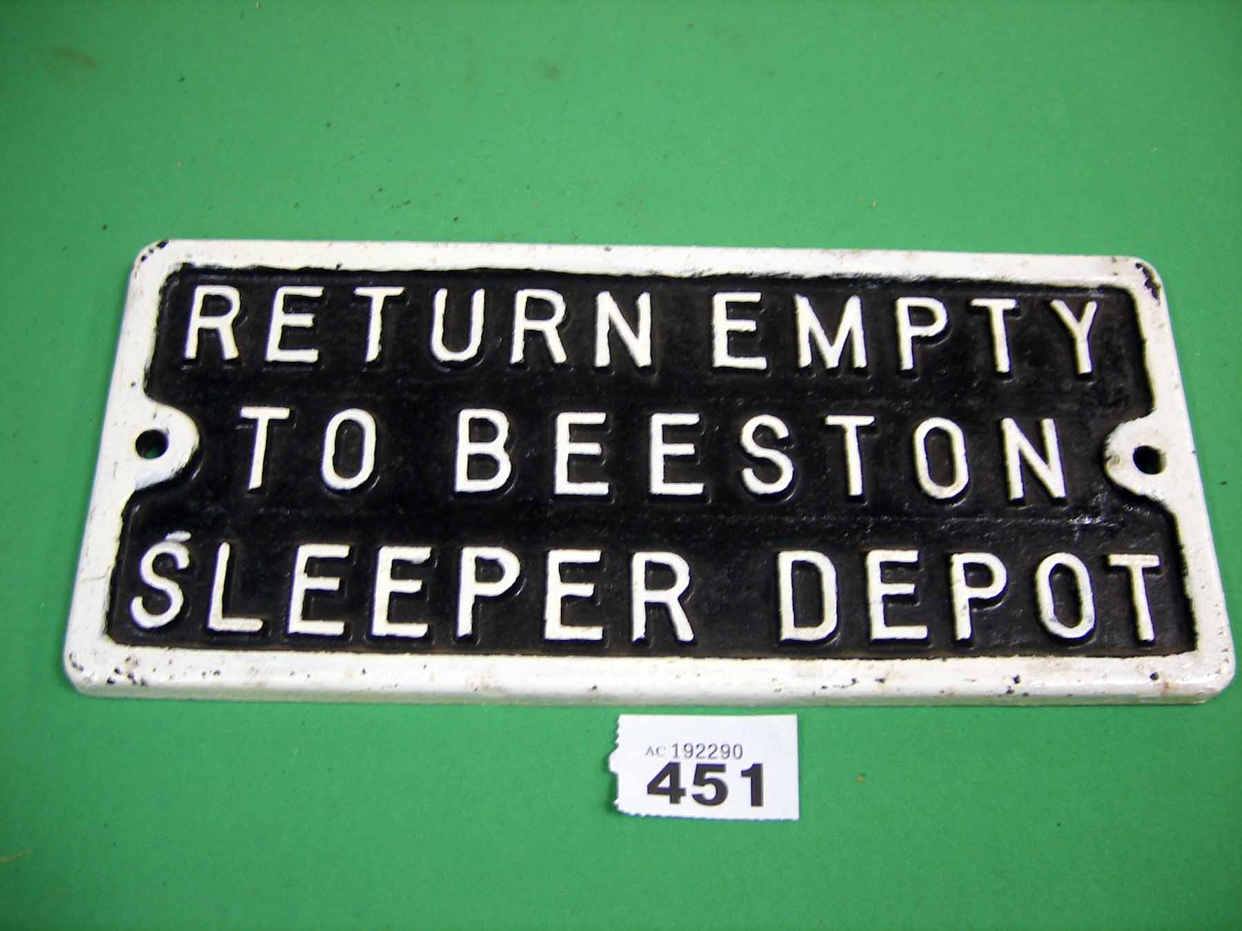 451 Wagon plate ‘Return empty to Beeston sleeper depot’ SC19