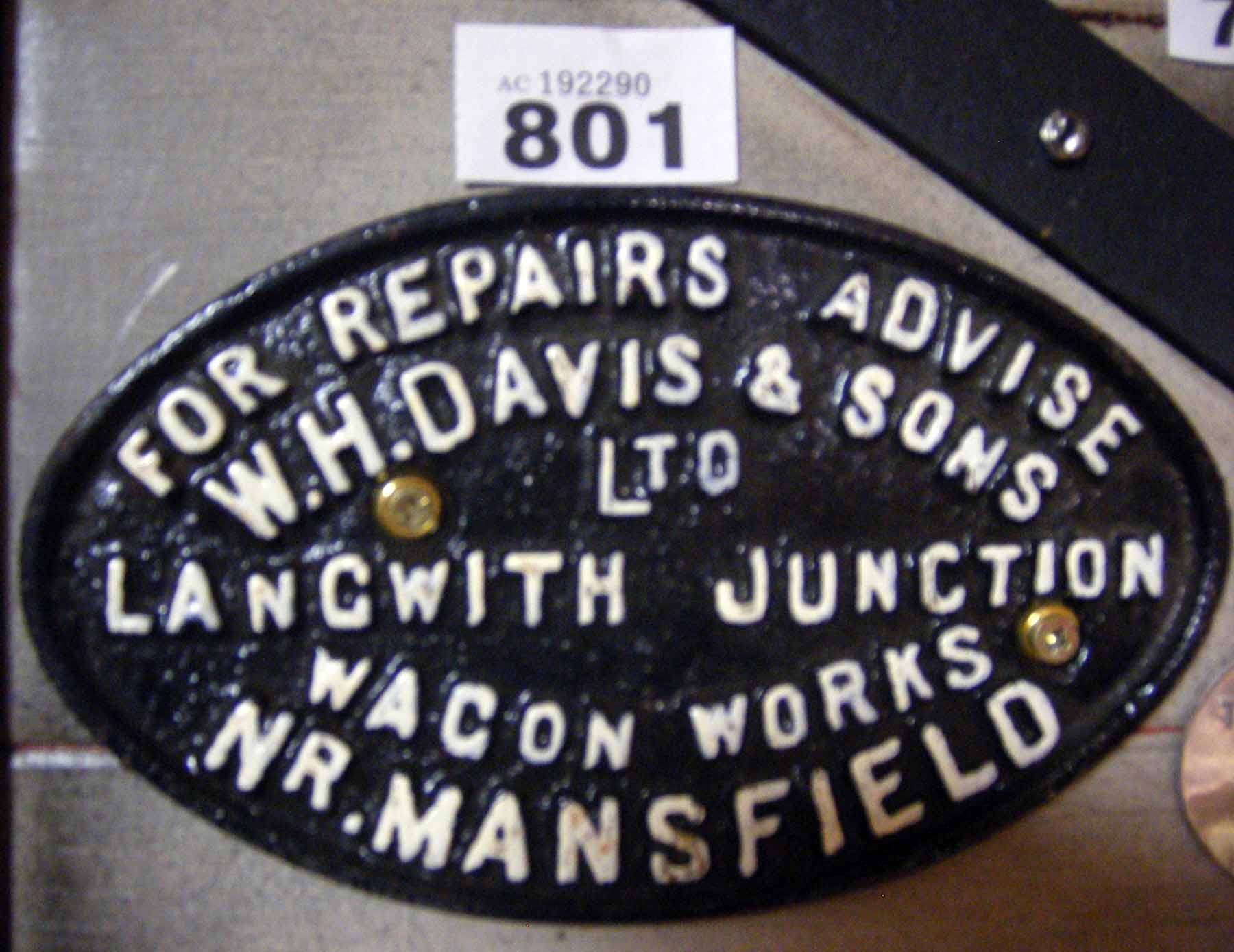 801 Wagon plate For repairs advise W.H.Davis & Sons Ltd. W.H.Davis & Sons Ltd., Builders C19