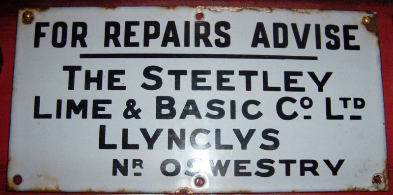 814 Wagon plate For repairs advise the Steetley Lime & Basic Co.Ltd Steetley Lime & Basic Co.Ltd. C19