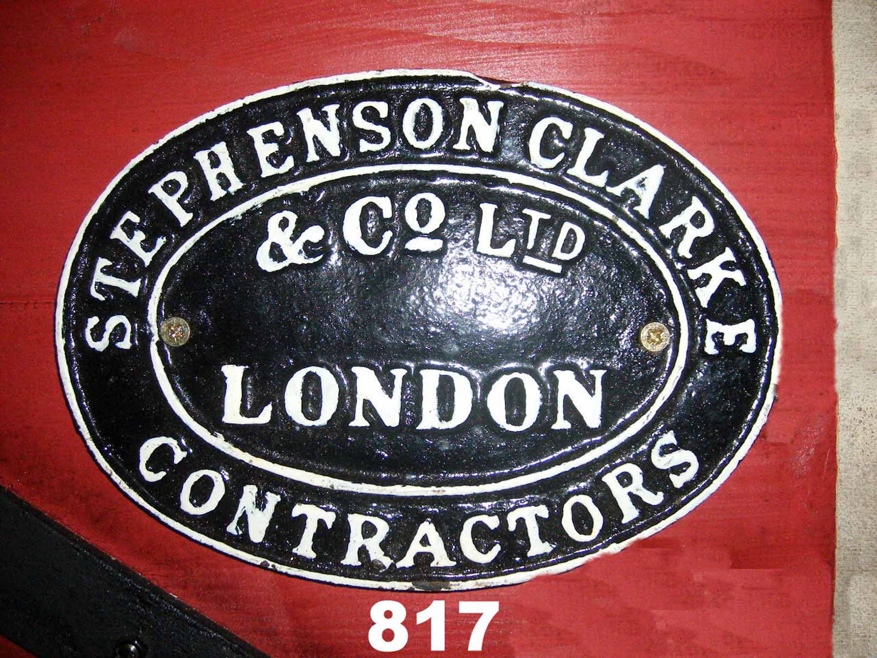817 Wagon plate Stephenson Clarke & Co. Ltd., London, Contractors Stephenson Clarke & Co. Ltd. C19
