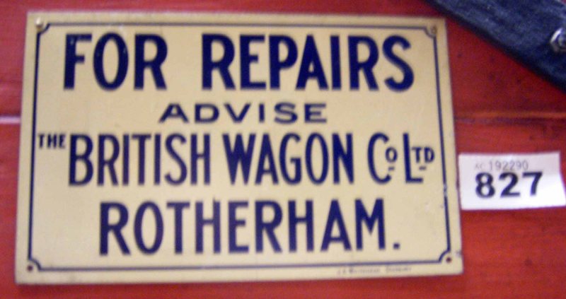 827 Wagon plate For repairs advise the British Wagon Co. Ltd., Rotherham British Wagon Co. Ltd. C19