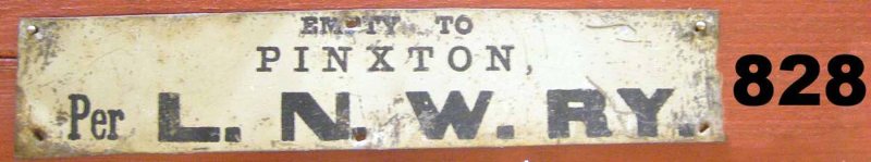 828 Wagon plate Empty to Pinxton per LNW Rly Pinxton C19