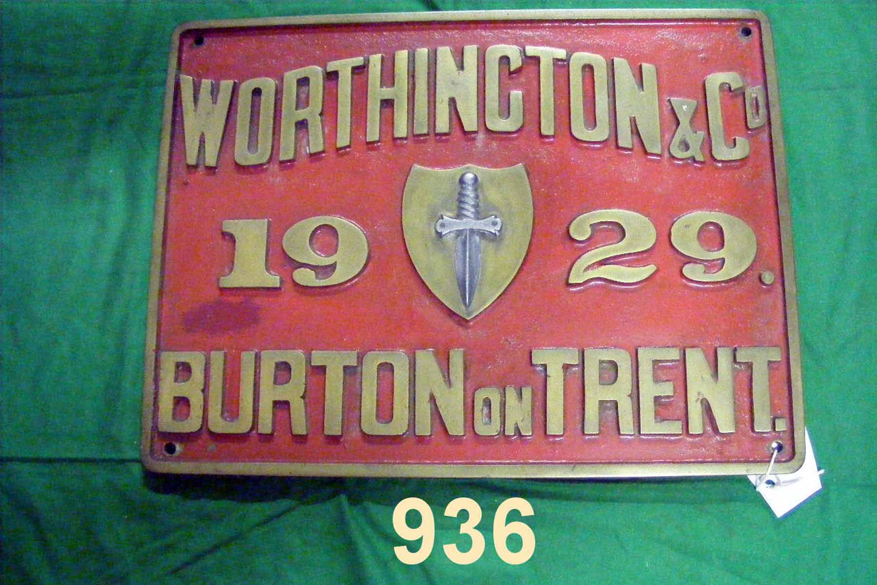 936 Locomotive owners’ plate Engine No.21 – 1929 Worthington R5.B1.S2