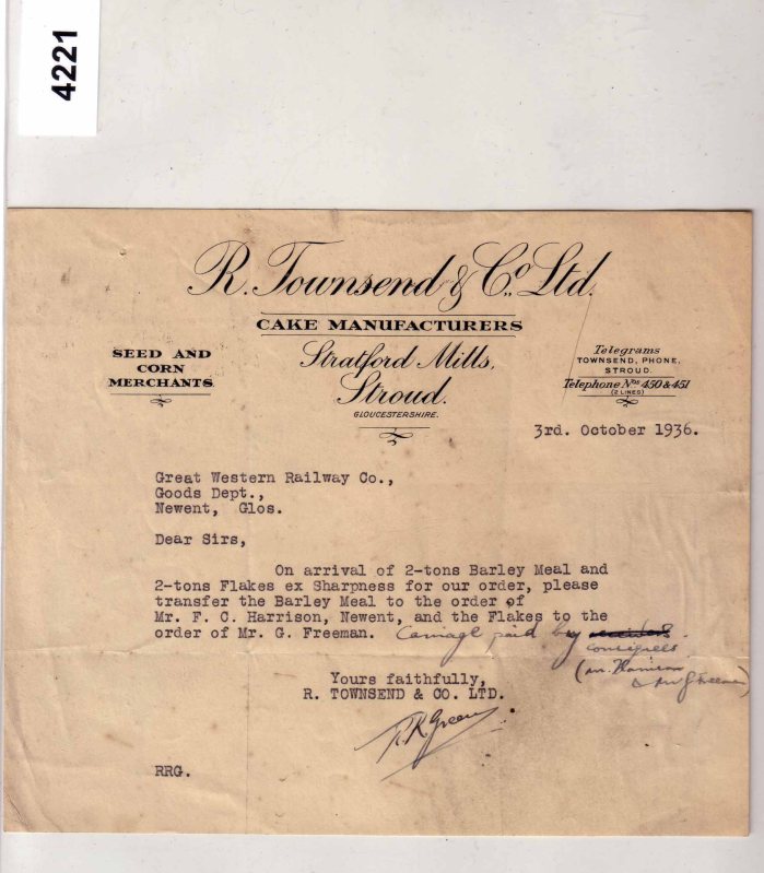4221 Form 1936 – Order from R.Townsend & Co.Ltd Box 14