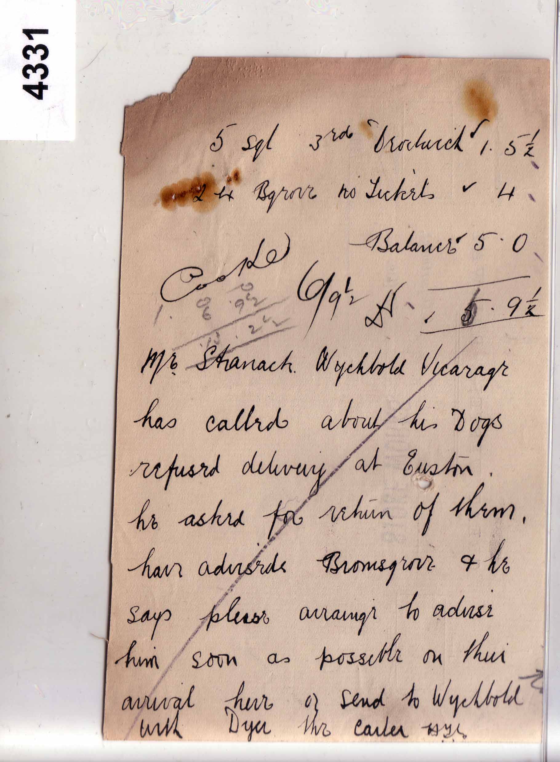 4331 Memorandum Re Dogs Refused Delivery Box 14