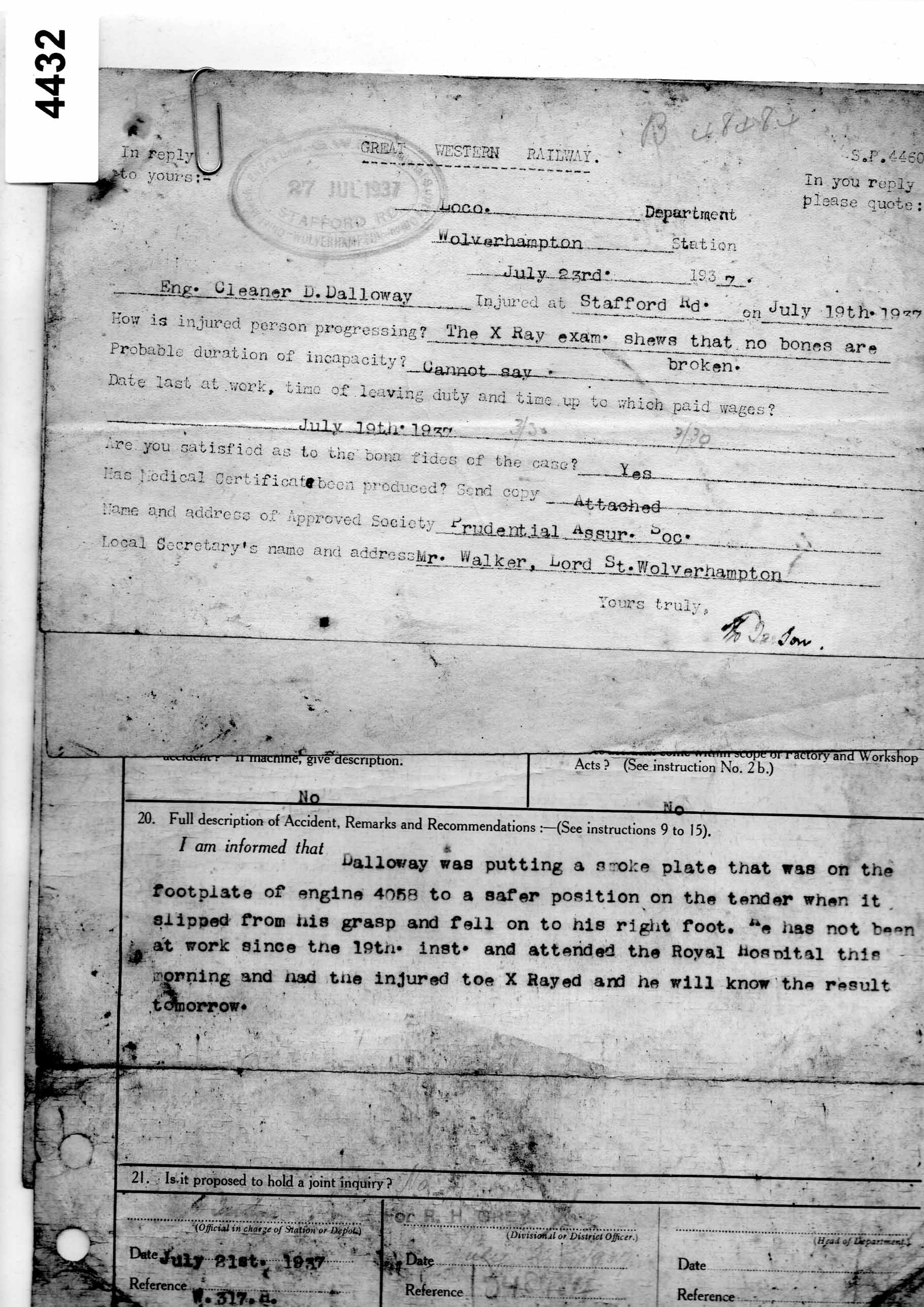 4431 Incident Report 1942 – Cannock Road, Wolverhampton Box 15