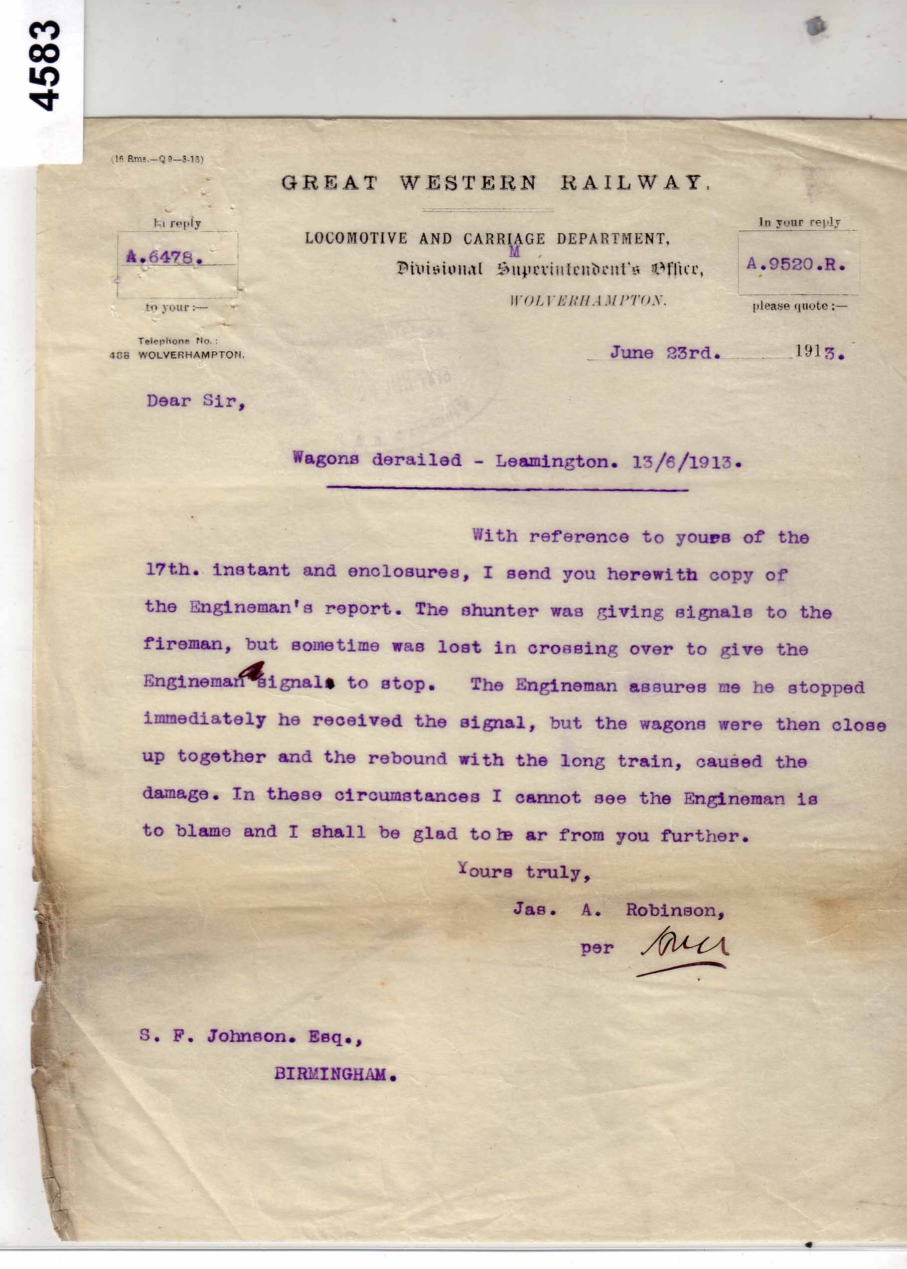4583 Accident Report 1913 – Leamington derailment Box 14