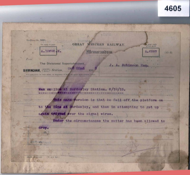 4605 Accident Report 1913 – Bordersley Station Box 14