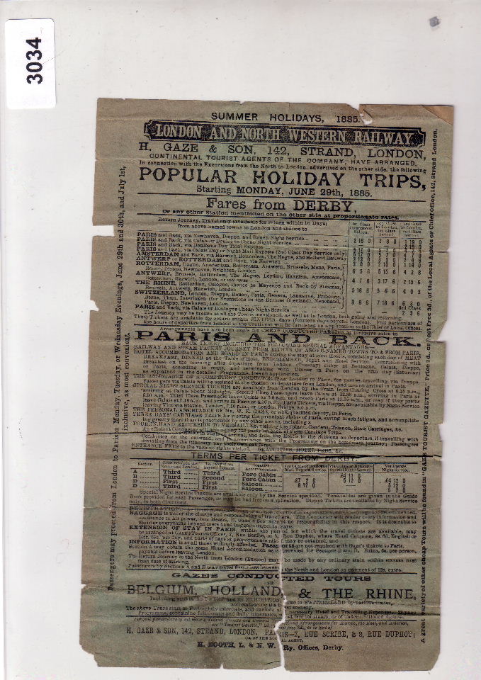 3034 Handbill Holiday trips from Derby – 1835 Box 1