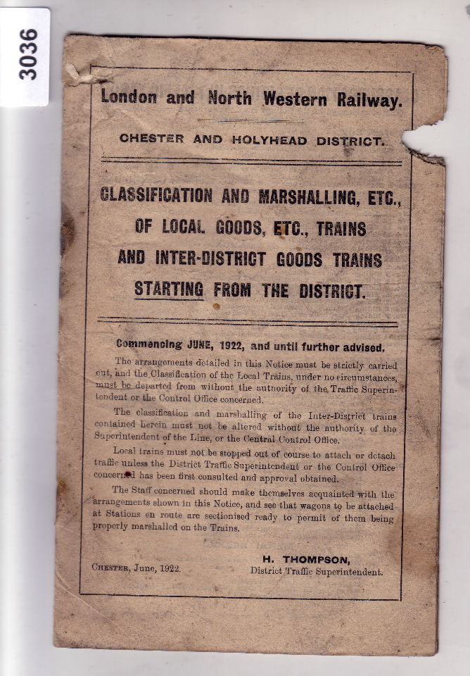 3036 Classification of Local Goods Trains Chester & Holyhead District – 1922 Box 1