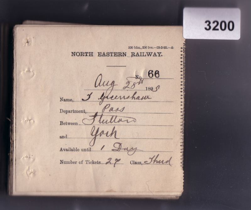 3200 Tickets Issued 1893/1898 Ex. Stutton Station Box 3A